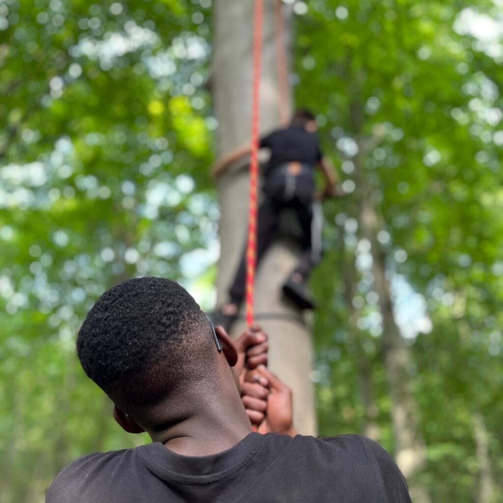 Elk feestje wordt begeleidt door één iemand van het klimbos. Jullie zekeren elkaar! De zekeraars hebben geen training nodig omdat we bovenin de boom een speciaal systeem hebben hangen waardoor het heel gemakkelijk is.